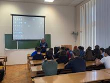 Обучающиеся АНО ПО «Северо-Кавказский академический многопрофильный колледж» 22 октября 2025 года встретились со старшим инспектором взвода 2 роты 2 ОБДПС Госавтоинспекции УМВД России по г. Ставрополю старшим лейтенантом полиции Москвицовым Константином Константиновичем.
