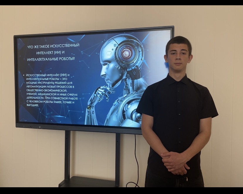 Студент 1 курс, очная форма обучения, специальность 40.02.02 Правоохранительная деятельность Чикичов Александр выступил с докладом на тему: «Этические и моральные последствия разработки ИИ».