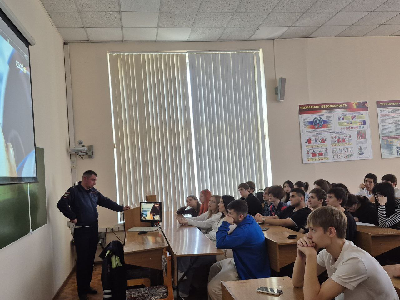 Обучающиеся АНО ПО «Северо-Кавказский академический многопрофильный колледж» 22 октября 2025 года встретились со старшим инспектором взвода 2 роты 2 ОБДПС Госавтоинспекции УМВД России по г. Ставрополю старшим лейтенантом полиции Москвицовым Константином Константиновичем.